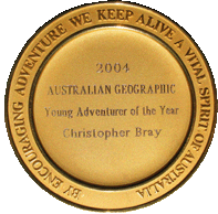 Young Adventurer Of the Year we were flown down and presented with the prestigious award from the Australian Geographic Society, in a ceremony at Federation Square in Melbourne, 9th June 2004. We both received a gold medallion.