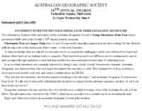 Press Release given out to media in regard to our taking out the Australian Geographic Societies 'Young Adventurer of the Year' award.